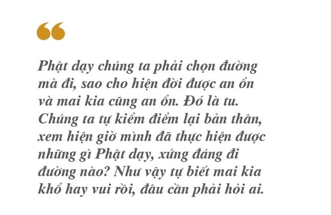 Phật dạy chúng ta phải chọn đường mà đi, sao cho hiện đời được an ổn và mai kia cũng an ổn. Đó là tu. Chúng ta tự kiểm điểm lại bản thân, xem hiện giờ mình đã thực hiện được những gì Phật dạy, xứng đáng đi đường nào? Như vậy tự biết mai kia khổ hay vui rồi, đâu cần phải hỏi ai. Phật tử có bệnh cứ thắp nhang cầu Phật độ cho con đời sau được sung sướng, hết khổ, mà cứ tạo nghiệp ác, làm sao Phật độ được?